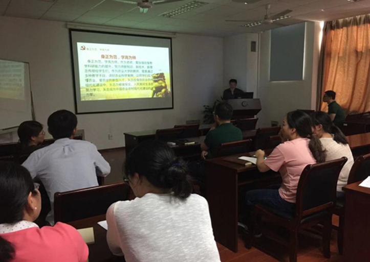 主题教育活动中,教师党支部书记邵涛教授开展了上党课活动。邵涛教授表示“教师无小节,处处是楷模。”在教师岗位上,如何铭记初心、实践初心、实现初心,是我们需要思考的问题。教育,育人为本,育人应该是我们教师永恒不变的初心。