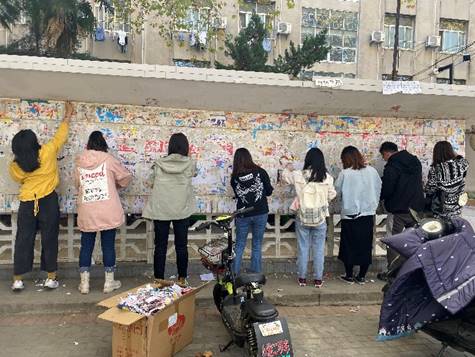 研究生第三党支部的党员们进行了清理小广告的志愿活动。