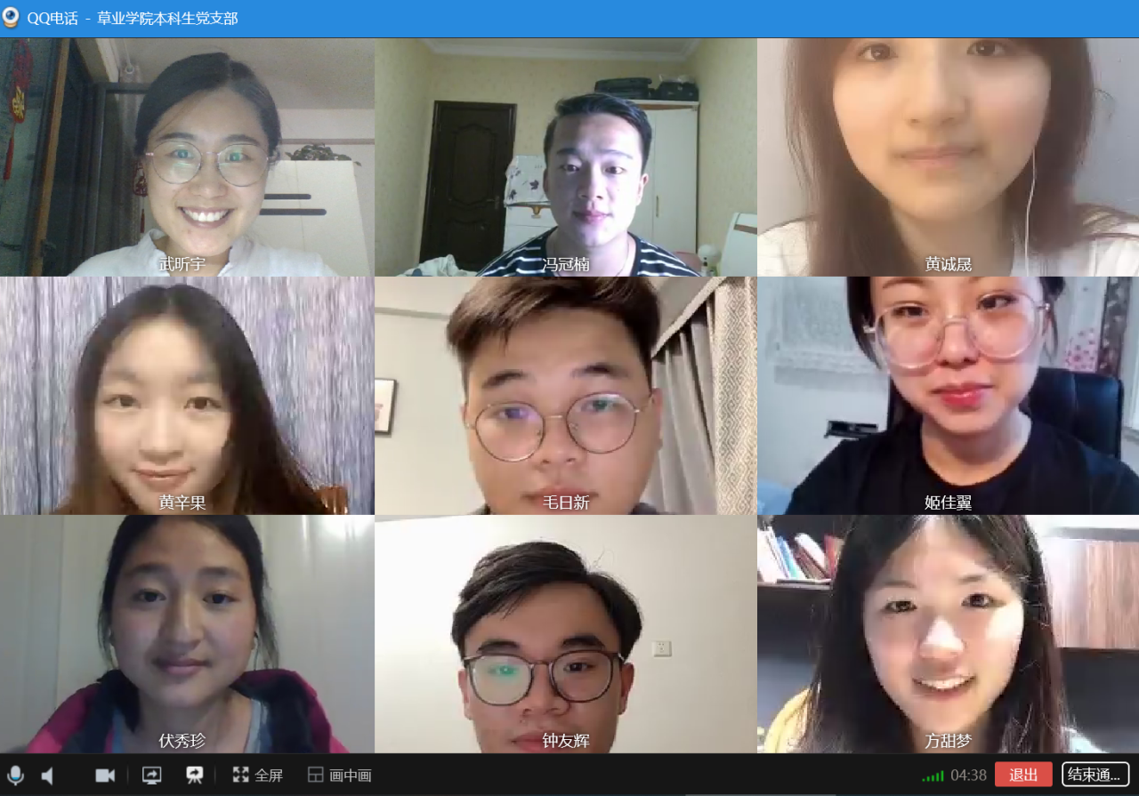 本科生党支部利用QQ视频召开了线上学习会,应到党员10人,实到党员10人,本科生党支部书记武昕宇主持了本次大会。