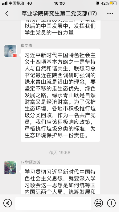 研究生第二党支部开展线上理论学习会议。研究生第二党支部全体党员参与了本次线上学习,此次理论学习会议由党支部副书记季晓敏同志主持。