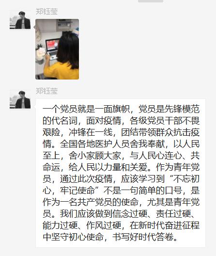 第三党支部各师生党员按例以线上自行学习方式第一时间认真收看战“疫”示范微党课。